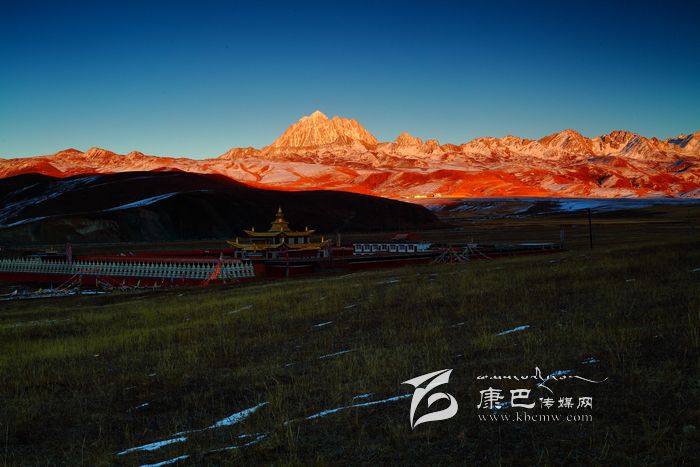 冬日的塔公草原。夕陽(yáng)下,一個(gè)人緩步行在高低起伏、荒去了的草地。