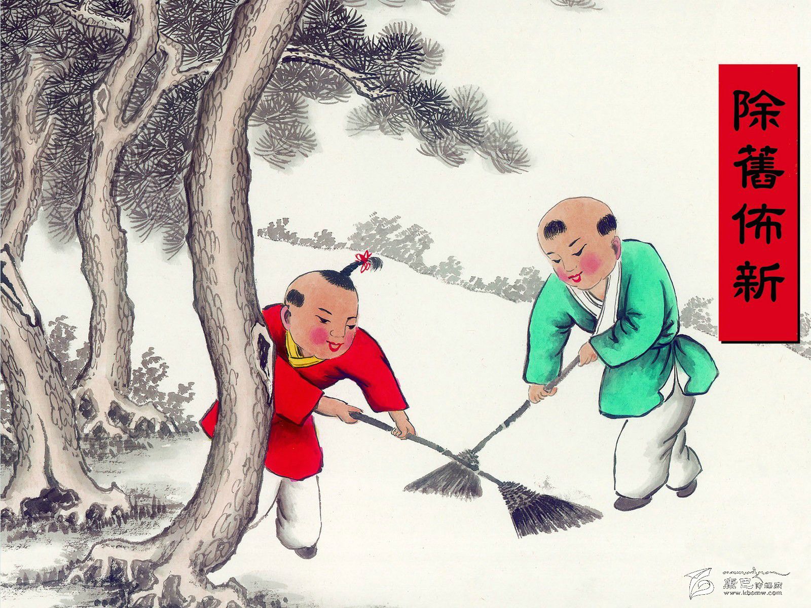 “臘月二十四,撣塵掃房子”的風俗,由來已久。據(jù)《呂氏春秋》記載,我國在堯舜時代就有春節(jié)掃塵的風俗。按民間的說法:因“塵”與“陳”諧音,新春掃塵有“除陳布新”的涵義,其用意是要把一切“窮運”、“晦氣” 統(tǒng)統(tǒng)掃出門。這一習俗寄托著人們破舊立新的愿望和辭舊迎新的祈求。