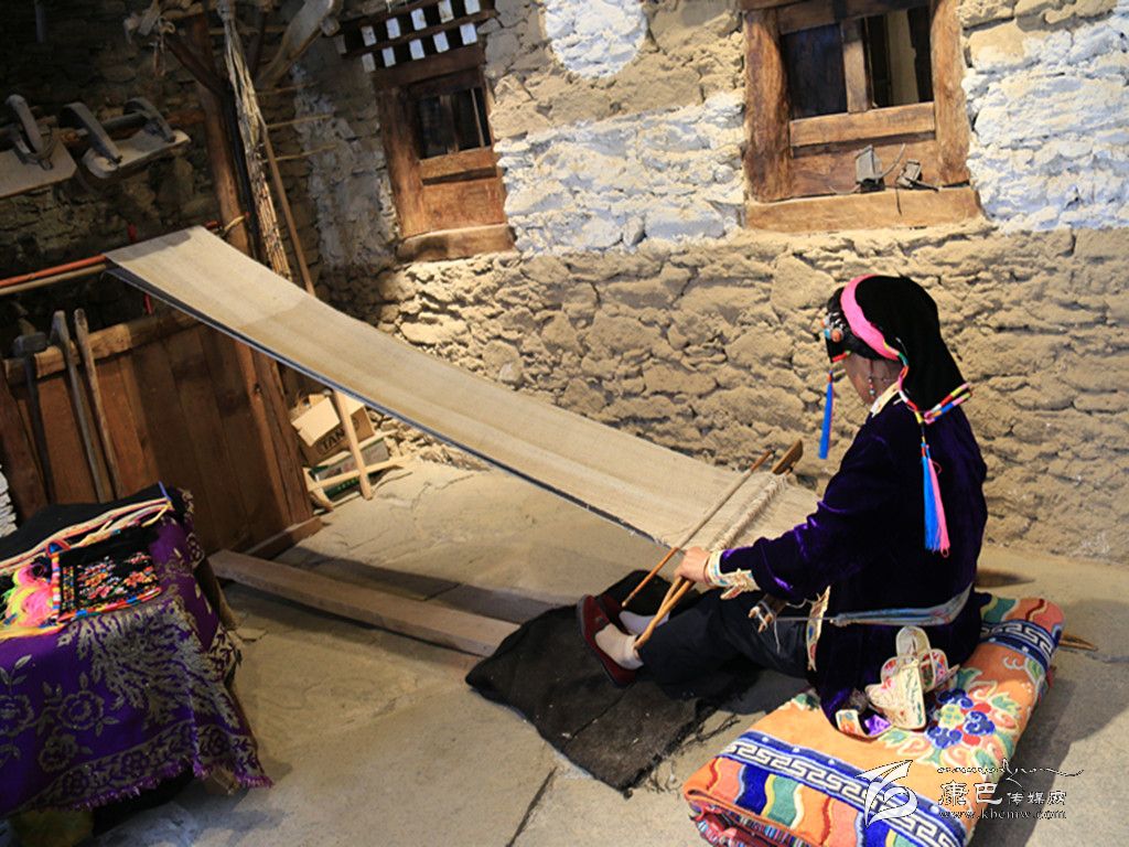 穿過古樸的大門,步入館中,映入眼簾的是古老的民間紡織技藝。一位藏族老阿媽端坐在古董般的織布機(jī)前,聚精會神地編織布匹,見到游人微笑回應(yīng),并未停下她手上的工作。年逾60的擁天秀,從十幾歲便學(xué)習(xí)織布,此間從未間斷。隨著紡織機(jī)逐漸被淘汰,擁天秀已成為傳承這門古老技藝的“活化石”。非遺展示館開館時,擁天秀主動表示,愿在此地免費為游客展示丹巴紡織技藝。 “我喜歡丹巴刺繡和紡織工藝,平時在家里也會做,現(xiàn)在眼睛不很好,所以刺繡沒有辦法做了。游客們很喜歡在這里看我織布,他們有什么問題,我都會給他們講解。”古老的嘉絨紡織技術(shù),通過擁天秀的雙手,漸漸被人們熟知,無數(shù)張游人與她的合影也被傳至網(wǎng)絡(luò)。經(jīng)她現(xiàn)場紡織,價值600元一匹的純手工布銷量也節(jié)節(jié)攀升,擁天秀研習(xí)多年的手工活在展示館中終于有了“用武之地”。