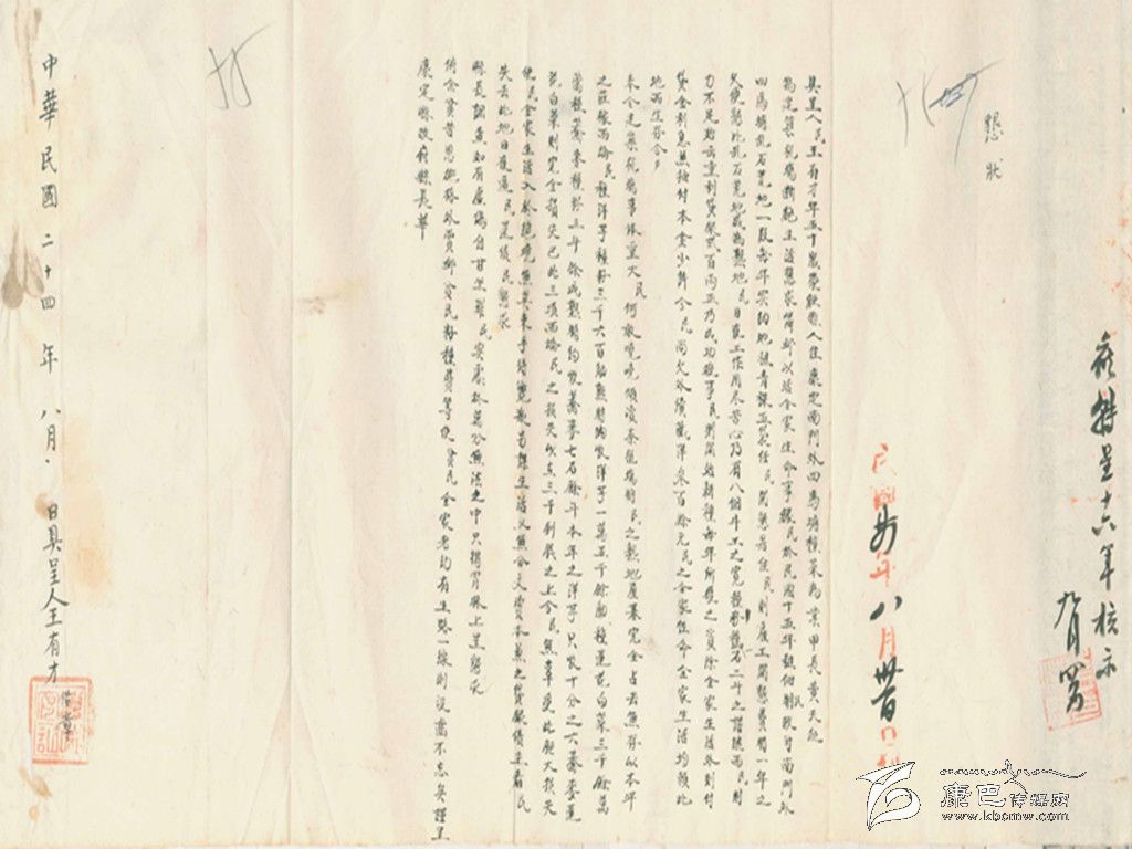當年國民黨一支中央軍在康定南郊修建了飛機場,其地址就在如今煙草公司到軍分區(qū)那一帶。這是個從來沒有發(fā)揮過作用的飛機場,過去一直以為那地方完全是荒蕪的河灘地,通過這份由一位名叫王有才的菜農(nóng)在1935年呈給縣長的“懇狀”,可以看出那地方其實也有可以種植出小菜的熟地。