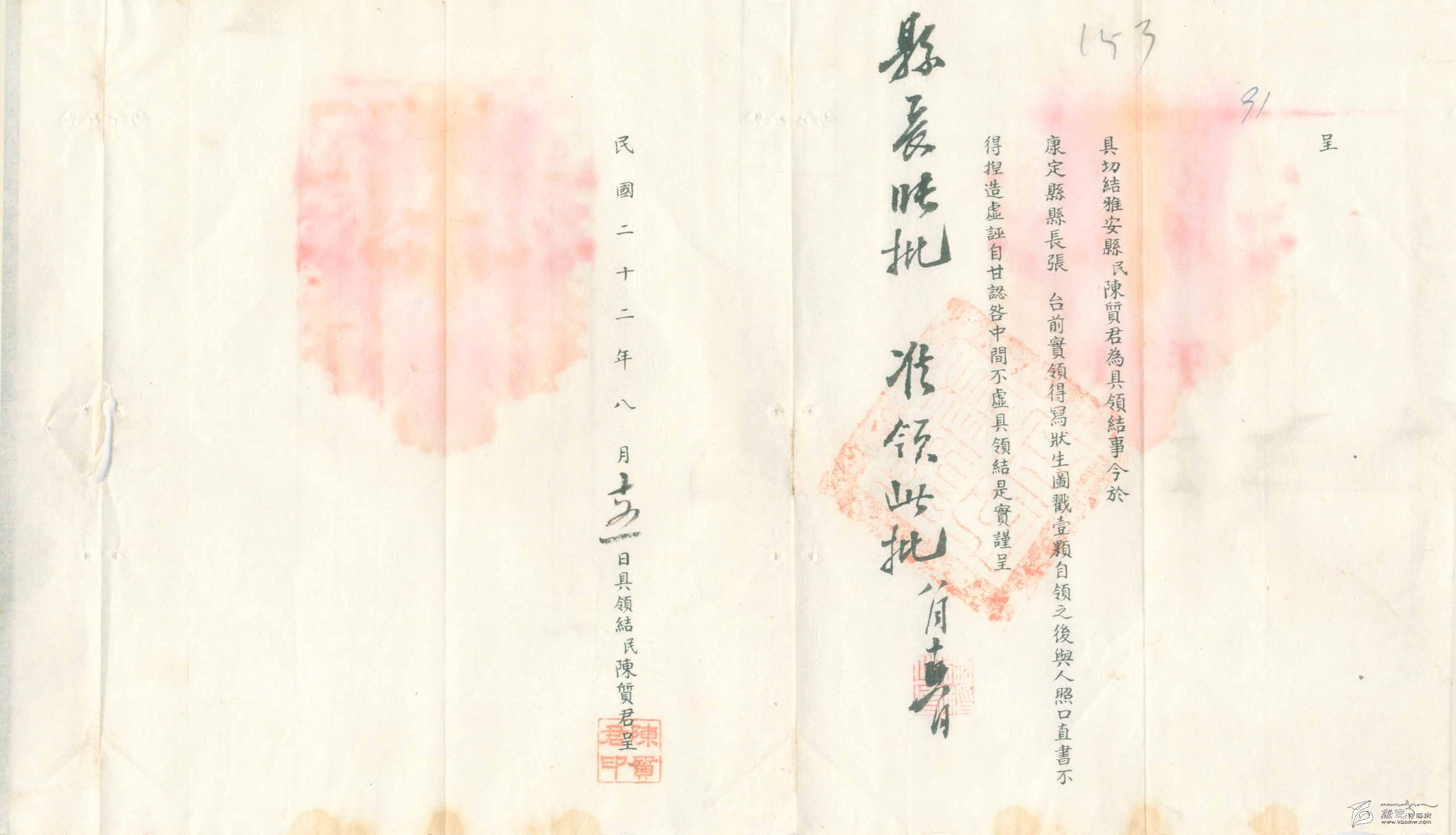 8月15日,陳質(zhì)君領(lǐng)到了“戳記”(應(yīng)是一枚印章),又向縣政府寫了“具結(jié)”(保證書)。對于他的考試估計(jì)到此結(jié)束,此人也就開始了他的“寫狀”生活。