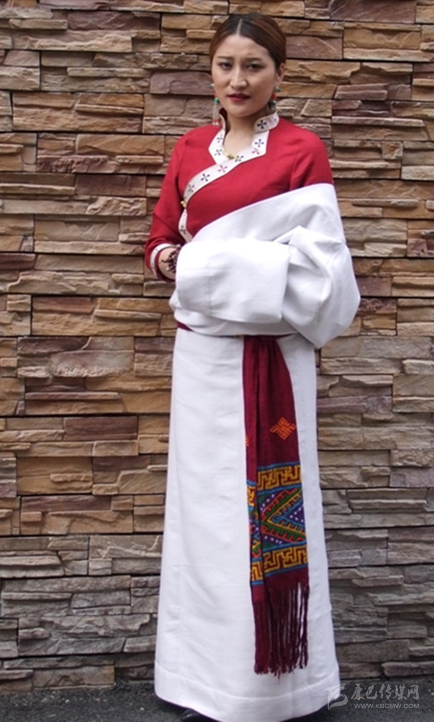 無論是經(jīng)典的黑色立領(lǐng)上衣還是金邊裝飾的翻領(lǐng)上衣,都十分時髦美觀,配上做工精細,由毛呢、氆氌等材料制成的充滿民族特色花紋的下衣,加上華麗珠寶鑲嵌的腰帶是對傳統(tǒng)藏裝的傳承與發(fā)展。