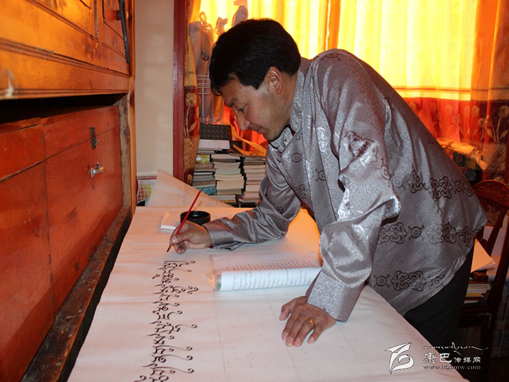 他就是巴松鄧珠,甘孜縣民族中學(xué)高級教師,從事藏文和藏文書法教學(xué)?,F(xiàn)為州老年書法家協(xié)會會員、州書法家協(xié)會會員和州藏文書法協(xié)會會員。