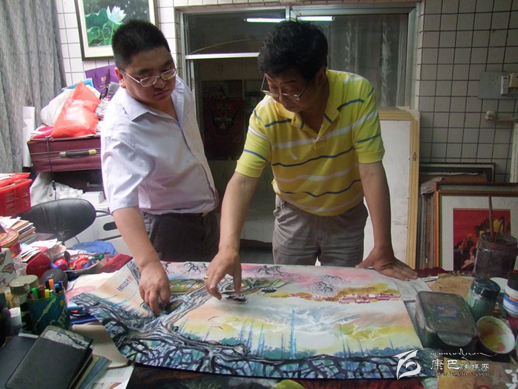 得知記者在《成都日報》學(xué)習(xí),文光裕先生便盛情相邀記者去他家里做客。7月9日,記者到雙流采訪了文光裕先生。文光裕先生詼諧幽默,學(xué)說逗唱、琴棋書畫樣樣都懂。他具有平和的心態(tài),所以看起來特別年輕,記者見到他的時候,很難把古稀老人與他聯(lián)系起來。人未見,笑聲先到,文光裕先生爽朗的笑聲感染了記者。他正在創(chuàng)作新舊康定對比繪畫作品。雄奇險峻的郭達山下,湍急的河水,密密麻麻的民房,這就是他記憶中上個世紀50年代的康定,雖然長期居住在內(nèi)地,但文光裕先生思鄉(xiāng)心切,用繪畫的形式來寄托對家鄉(xiāng)的思念。