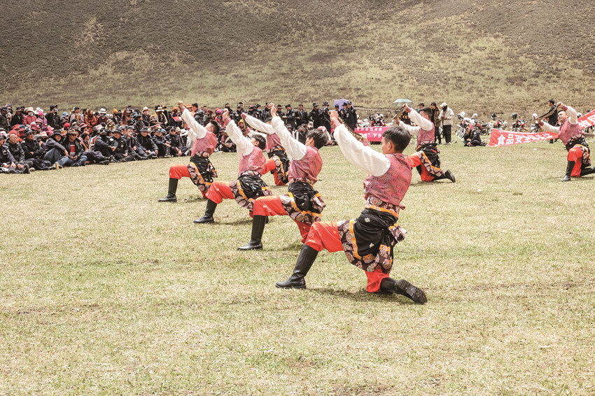 這個(gè)演出隊(duì)匯集了當(dāng)時(shí)縣上最優(yōu)秀的踢踏舞者,在那里我認(rèn)識(shí)了陳幫文、洛呷、伍伯康、貢布、絨波、俄洛啟加等,那真是一批踢踏舞的精英,每當(dāng)音樂響起,你就看他們那翻飛的腳步如流動(dòng)的浪花,酣暢淋漓,激情四射。