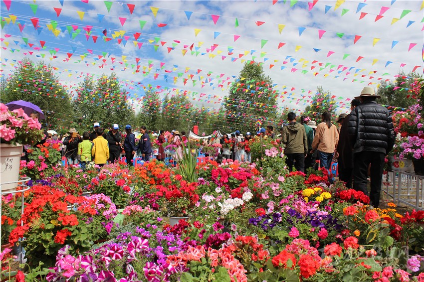 當天,身著(zhù)色彩艷麗藏族服飾的表演者徜徉在花海中,與群眾游客聚集在一起,賞美景、品華服,傳承藏族禮儀文化、傳播藏民族服飾文化,沉浸在喜慶氛圍中。