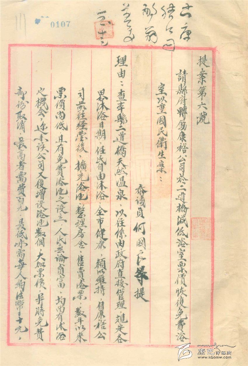 另一份舊檔案也有趣,這是一份由一名參議員提出的提案,內容是由于生活在康定的人、包括公務人員在內,因為收入少,生活困難。請求康定縣政府出面給經營二道橋的“康裕公司”提出二道橋洗浴不收費,經營方的虧空可以在其它經營,如餐飲獲得的利潤中解決。參議會上還通過了這個提案,說是“原案所擬辦法尚屬可行,擬送請縣府轉飭康裕公司照辦”。這份提案再無下文,康裕公司是不是照辦了,不得而知,就是參議會是不是轉給了康定縣政府也不得而知。以今天的眼光看,這份提案有滑稽、有趣的一面,卻也有關注民生而十分無奈的一面。
