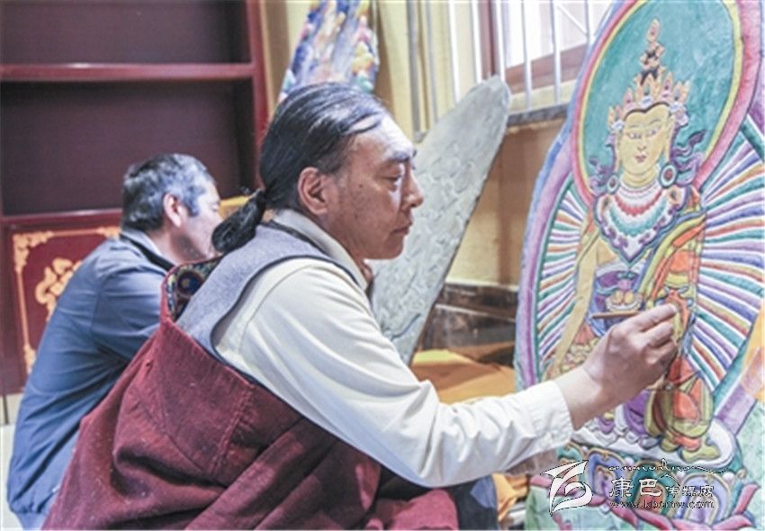 從子承父業(yè)再到吸眾家之長,自離開故鄉(xiāng)的那天起,巴德的視野開始變得開闊起來。1979年到省藏校學(xué)習(xí)藏文和美術(shù),并開始涉獵泥塑技藝,隨后又向德格民間藝人扎西澤郎學(xué)習(xí)彩繪石刻,然后又到西藏、甘肅等地學(xué)習(xí)繪畫、石刻技藝。巴德說,自己之所以有今天的藝術(shù)造詣,是因為有一批名師指點,是因為自己的不斷探索和長期堅守。讓他欣慰的是,自己的三個兒子都在學(xué)習(xí)石刻和繪畫,親戚朋友中的十多個孩子也成了他的入門弟子。