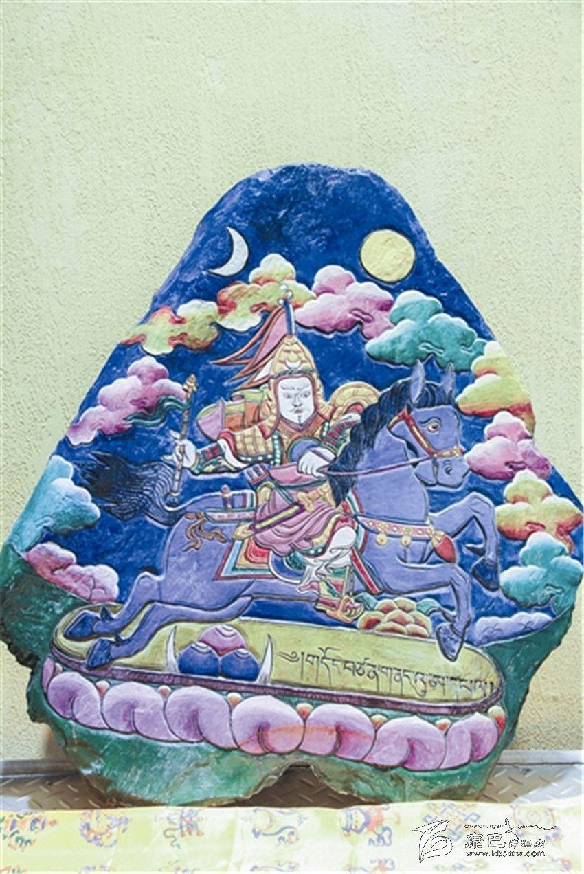據(jù)了解,格薩爾彩繪石刻是藏族民間美術(shù)中的一門創(chuàng)新藝術(shù),它不僅是格薩爾文化的一種新的傳承方式,也填補了格薩爾文化在藏族石刻中的空白。格薩爾彩繪石刻刀法精細,取材考究,在采用鑿刻、直刻、斜刻刀法的同時,注重磨刻、磨劃技術(shù)效果,使石刻畫構(gòu)圖和諧。在石刻畫上采用了彩繪工藝,這樣既增加了畫面視覺的藝術(shù)感和光澤度,又可以起到保護作用。