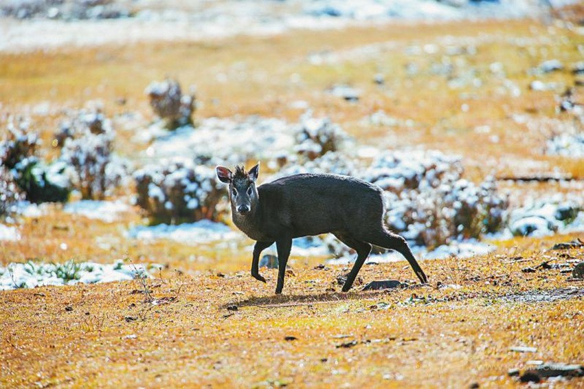 雖然沒拍到羚牛,貢嘎山卻讓他們拍下巖羊群、高原兔、毛冠鹿等大中型食草動(dòng)物的行蹤,還額外“贈(zèng)送”了不少意外之喜。